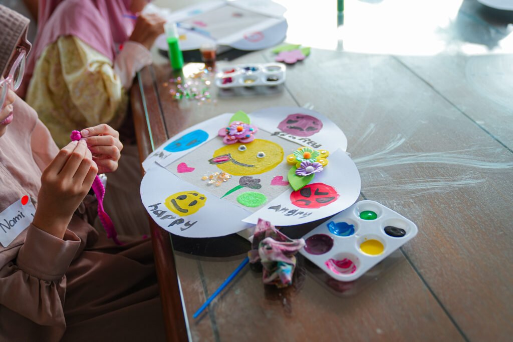 Sementara para ibu mengikuti sesi refleksi, anak-anak mengikuti aktivitas kreatif bertema My Colorful Feelings yang difasilitasi oleh Monica and team dari Kalare.